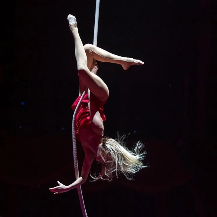 Mit Wurzeln in Russland und einem Hintergrund, der von kraftvollen Auftritten in ganz Europa geprägt ist, bringt Jenny eine einzigartige Energie auf das Seil - eine Mischung aus dynamischer Bewegung, Kraft und femininer Ästhetik.