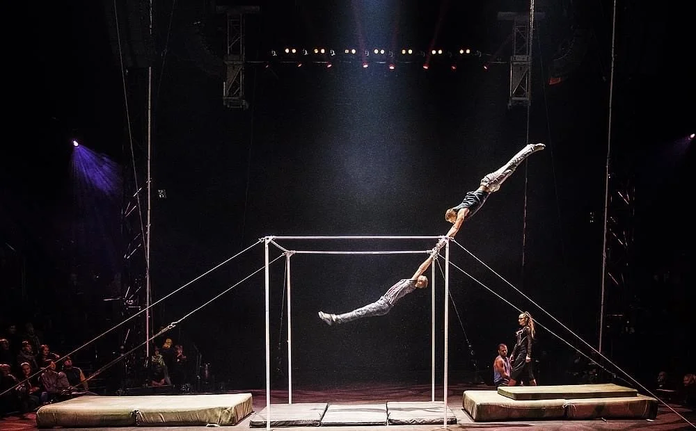 An der High Bar verschmelzen Eleganz, Mut und grenzenlose Energie. Unsere Artist:innen fliegen in atemberaubenden Höhen, drehen und wirbeln mit unglaublicher Präzision durch die Luft – scheinbar schwerelos, nur gehalten von einer einzigen Stange. Jeder Sprung erzählt von Kraft, Vertrauen und perfektem Timing.